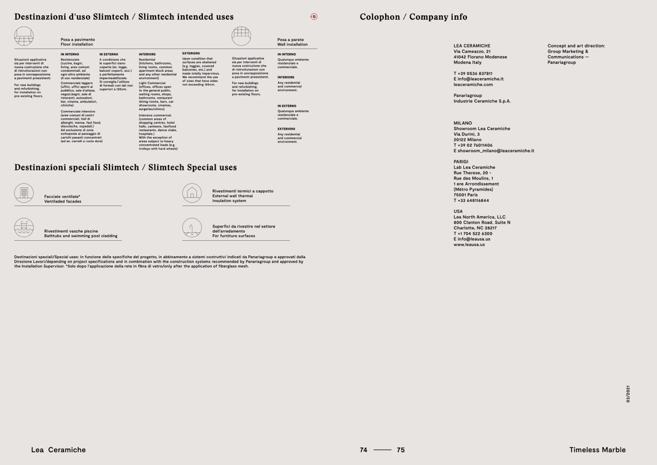 Destinazioni speciali/Special uses: in funzione delle specifiche del progetto, in abbinamento a sistemi costruttivi indicati da Panariagroup e approvati dalla