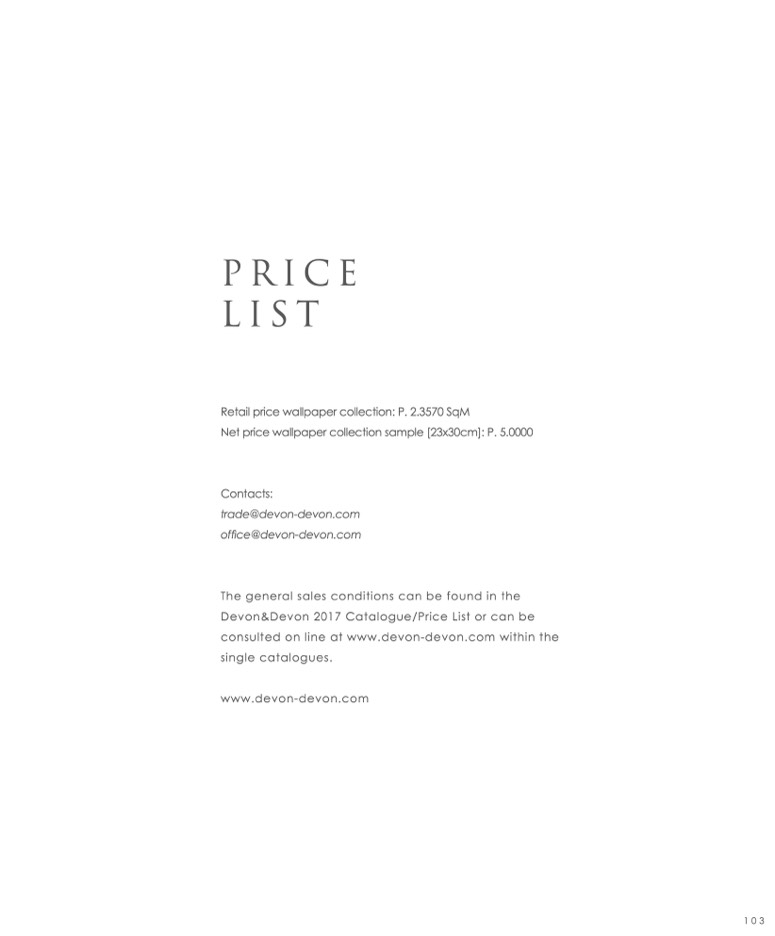 Devon&Devon 2017 Catalogue/Price List or can be