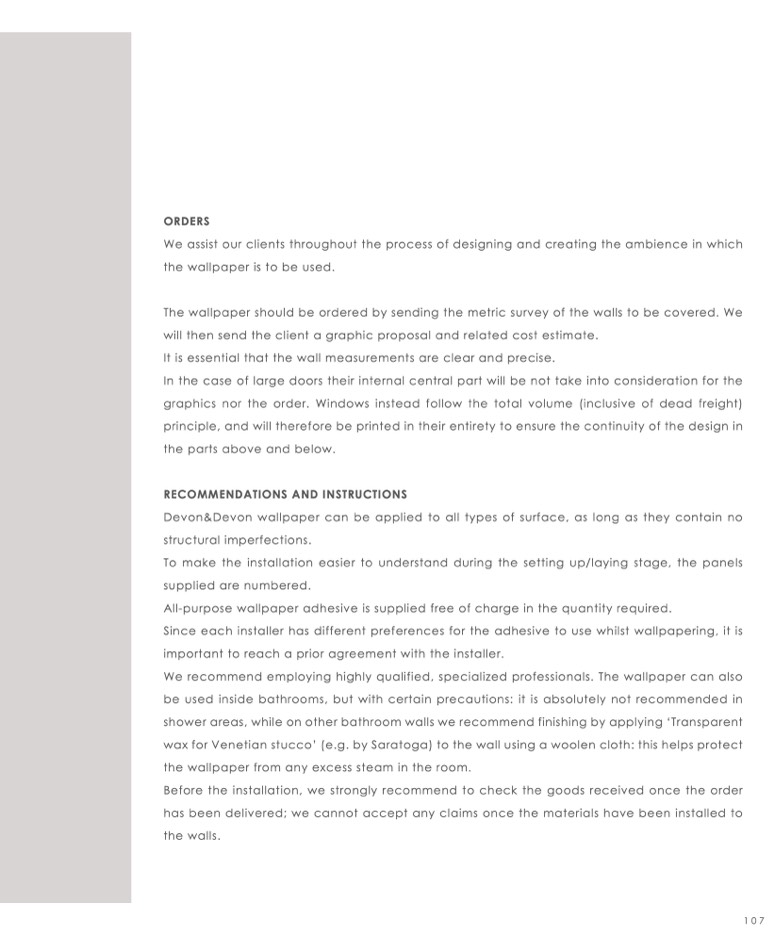 Devon&Devon wallpaper can be applied to all types of surface, as long as they contain no