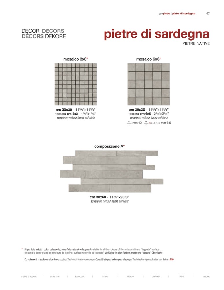 Disponible dans toutes les couleurs de la série, surface naturelle et “lappata” Verfügbar in allen Farben, matte und “lappata” Oberflache