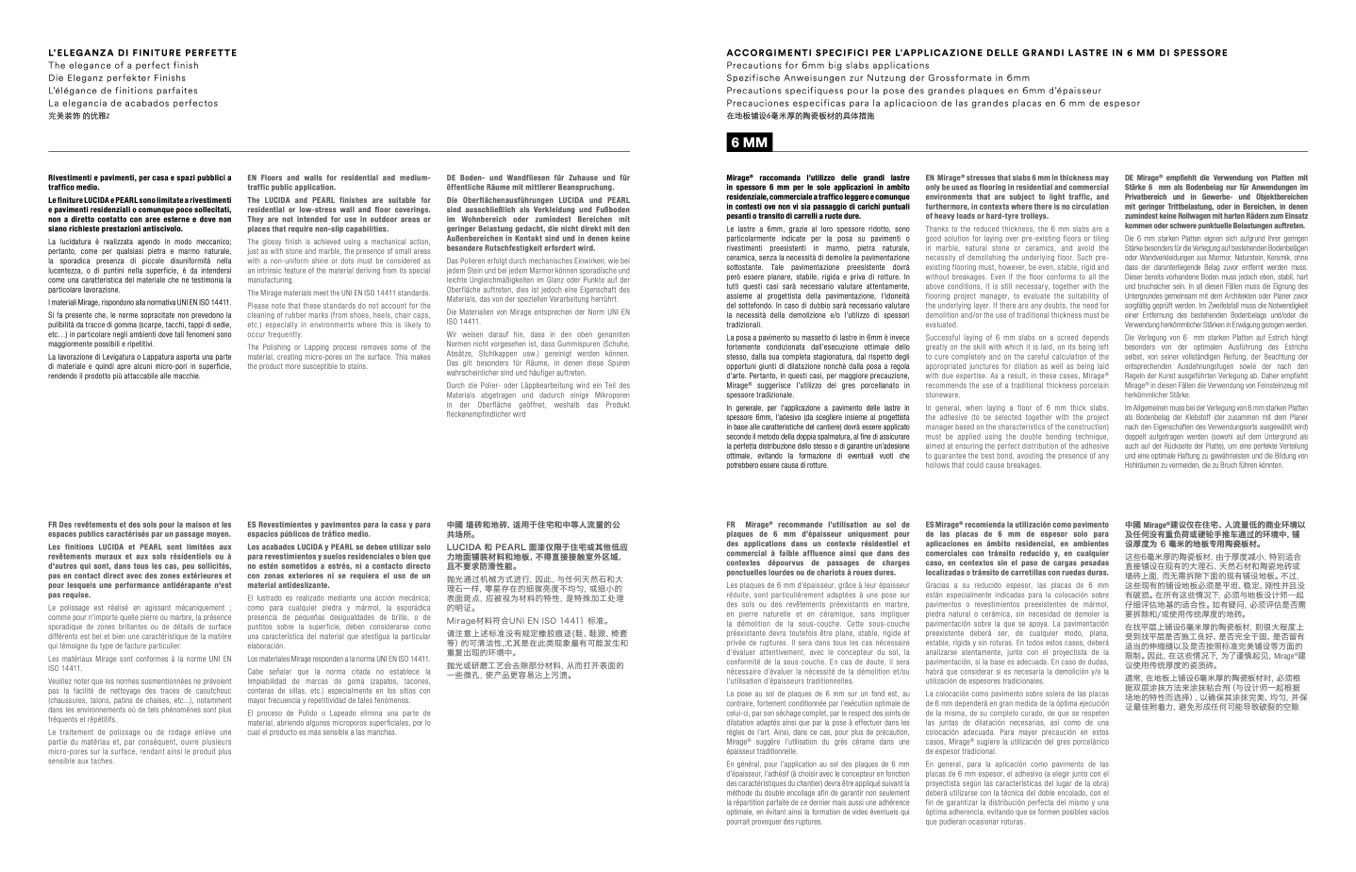 Los materiales Mirage responden a la norma UNI EN ISO 14411.