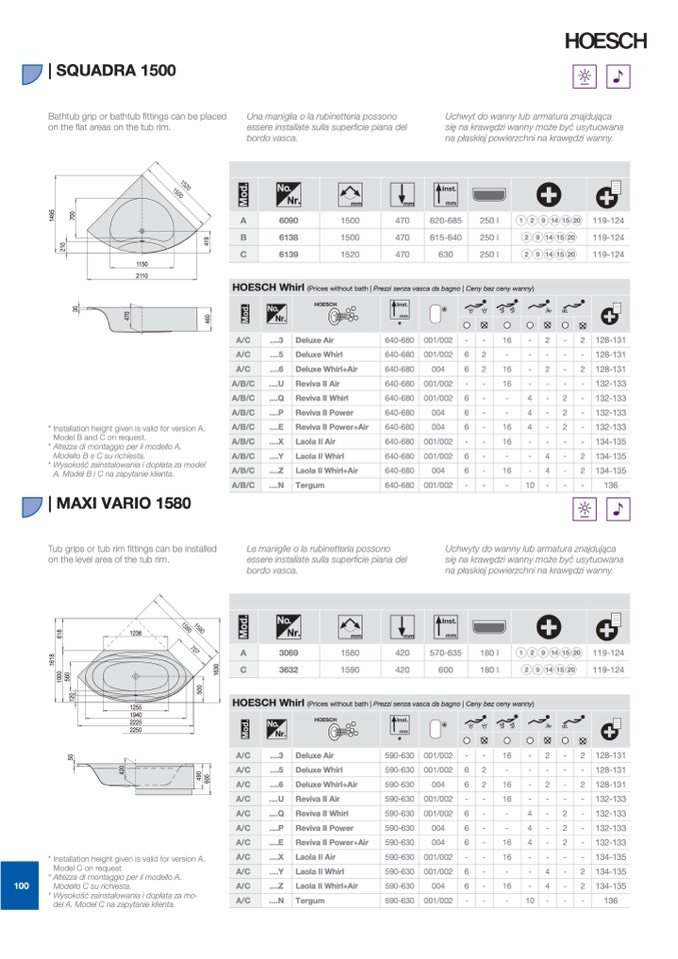 (Prices without bath | Prezzi senza vasca da bagno | Ceny bez ceny wanny)