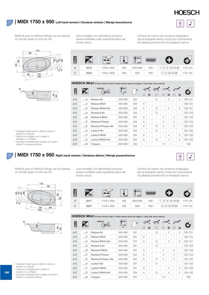 (Prices without bath | Prezzi senza vasca da bagno | Ceny bez ceny wanny)