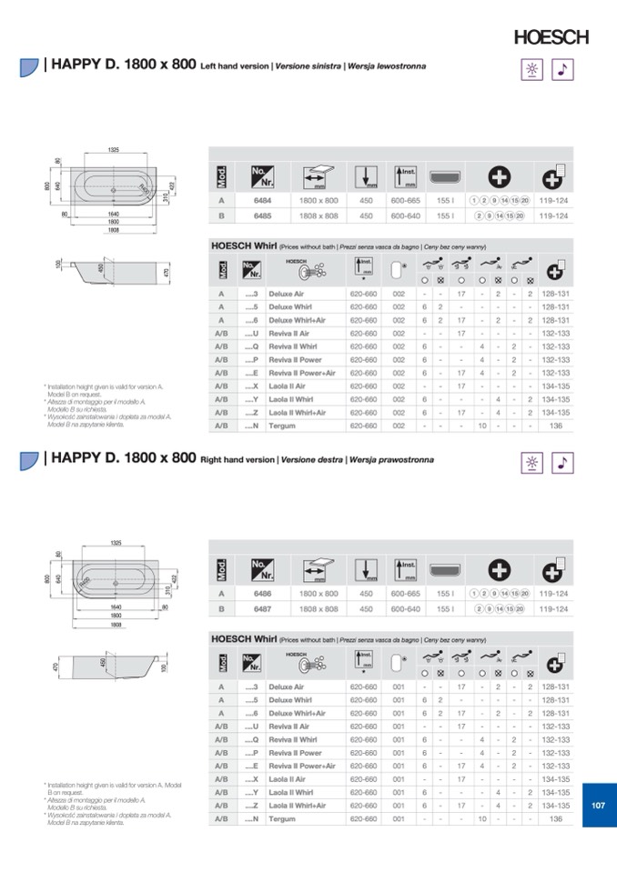 (Prices without bath | Prezzi senza vasca da bagno | Ceny bez ceny wanny)