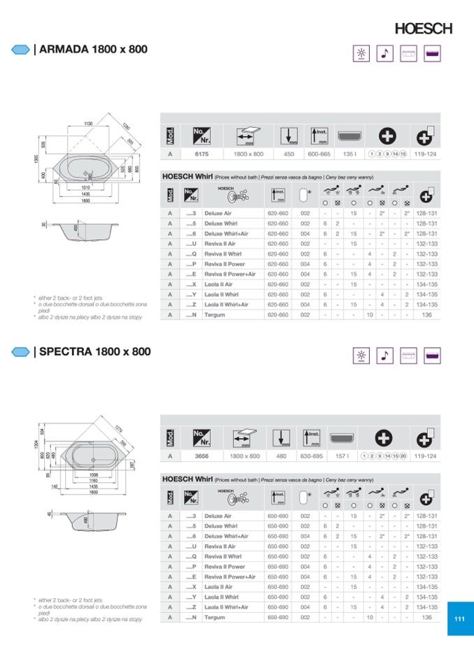 (Prices without bath | Prezzi senza vasca da bagno | Ceny bez ceny wanny)