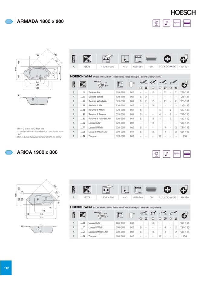 (Prices without bath | Prezzi senza vasca da bagno | Ceny bez ceny wanny)