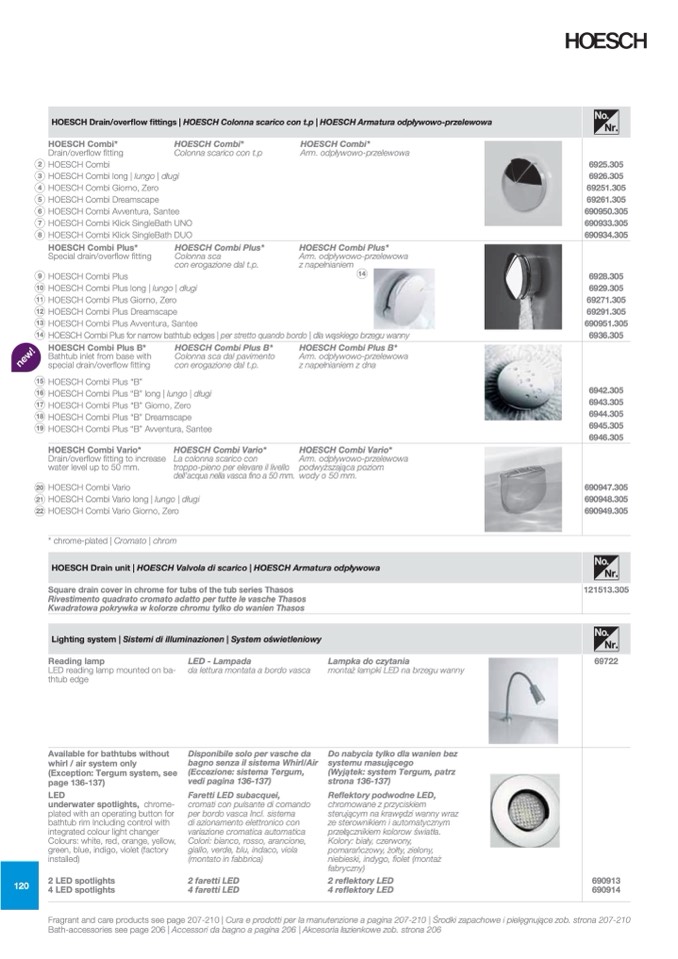 HOESCH Drain/overflow fittings | HOESCH Colonna scarico con t.p | HOESCH Armatura odpływowo-przelewowa