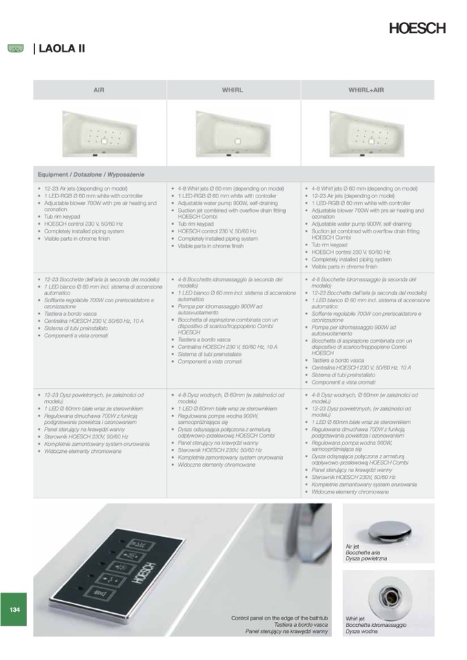 4-8 Whirl jets Ø 60 mm (depending on model)