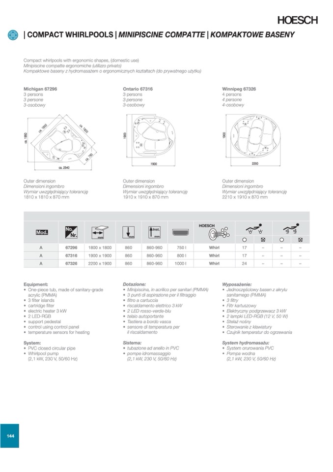 Minipiscine compatte ergonomiche (utilizzo privato)