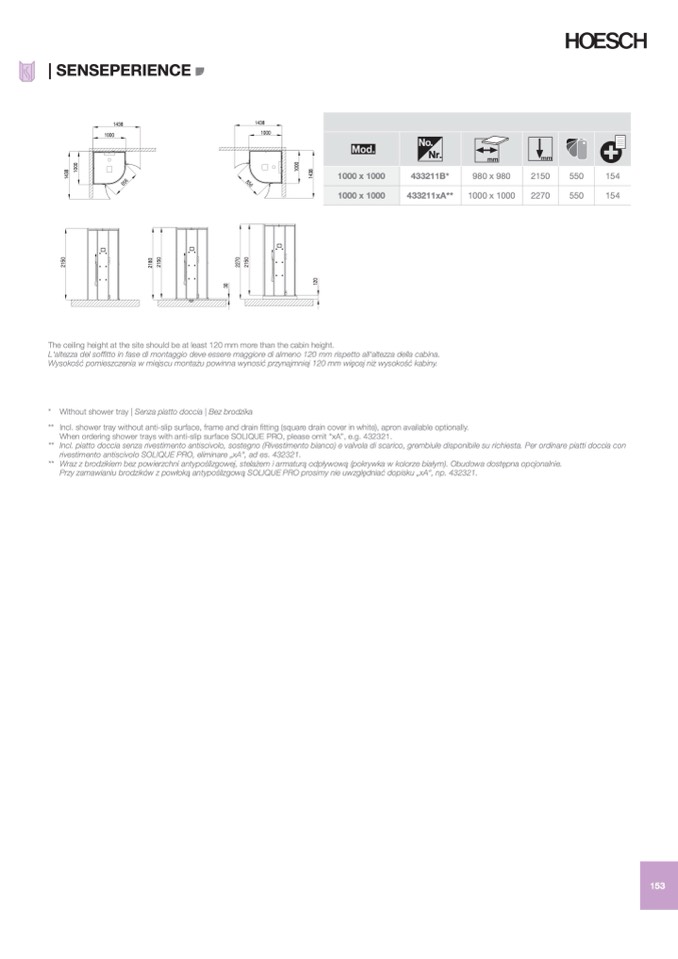 When ordering shower trays with anti-slip surface SOLIQUE PRO, please omit “xA”, e.g. 432321.