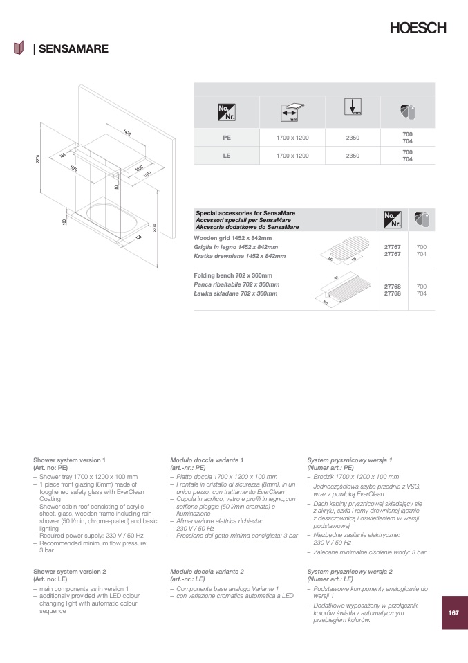 – Piatto doccia 1700 x 1200 x 100 mm