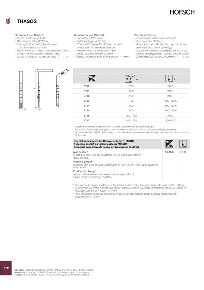 Avvertenza: Il piatto doccia THASOS e MUNA deve essere ordinato separatamente.