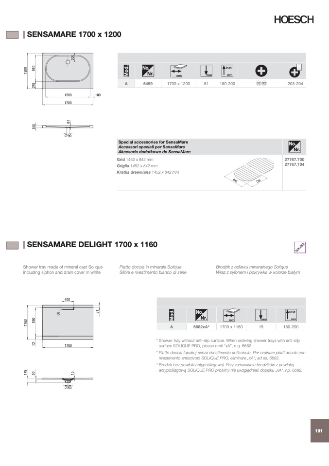 * Shower tray without anti-slip surface. When ordering shower trays with anti-slip