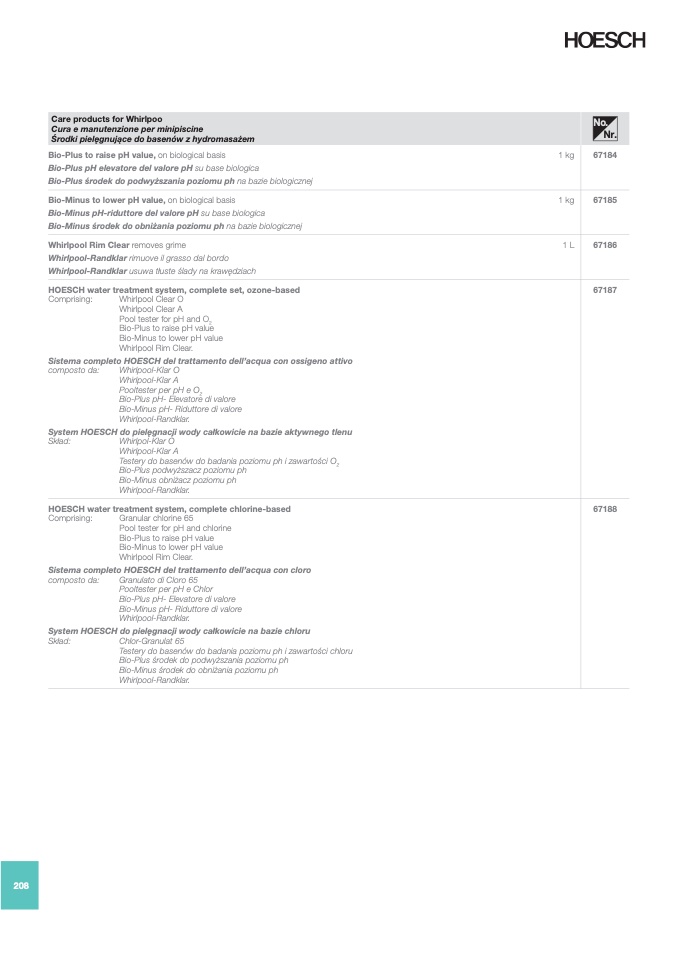 Sistema completo HOESCH del trattamento dell’acqua con cloro