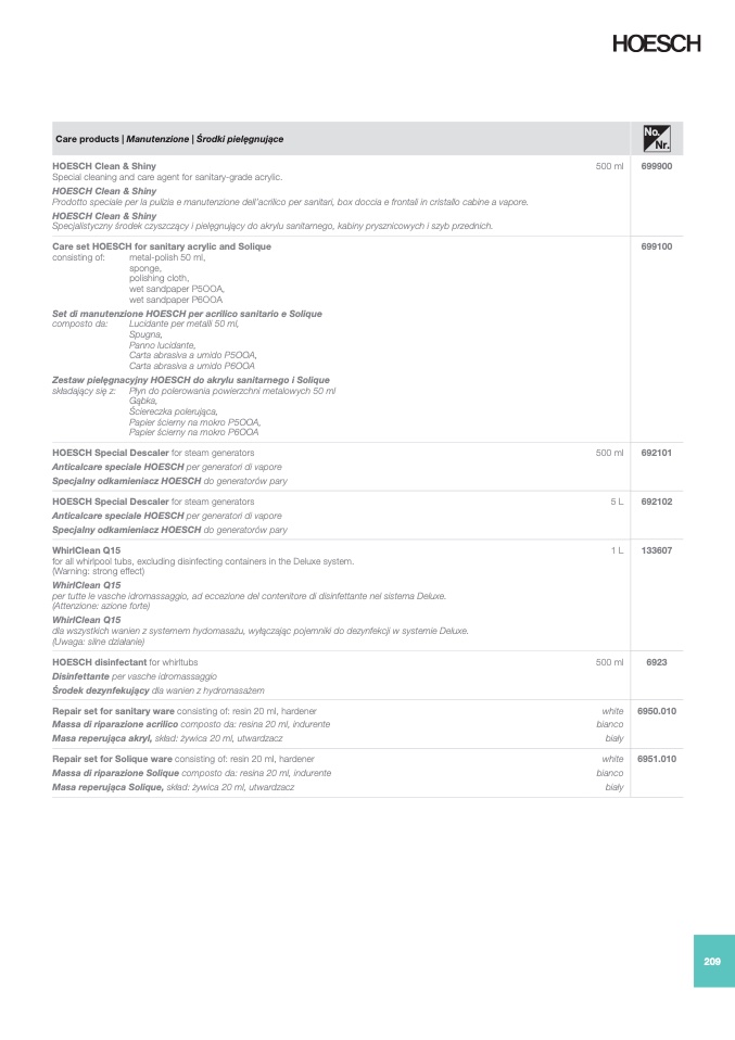 Care set HOESCH for sanitary acrylic and Solique