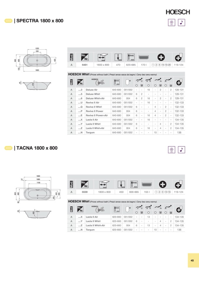 (Prices without bath | Prezzi senza vasca da bagno | Ceny bez ceny wanny)