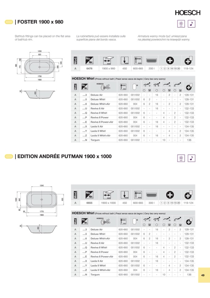 (Prices without bath | Prezzi senza vasca da bagno | Ceny bez ceny wanny)