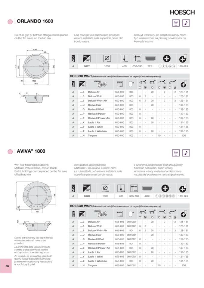 (Prices without bath | Prezzi senza vasca da bagno | Ceny bez ceny wanny)