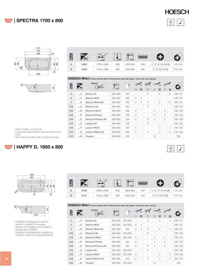 (Prices without bath | Prezzi senza vasca da bagno | Ceny bez ceny wanny)