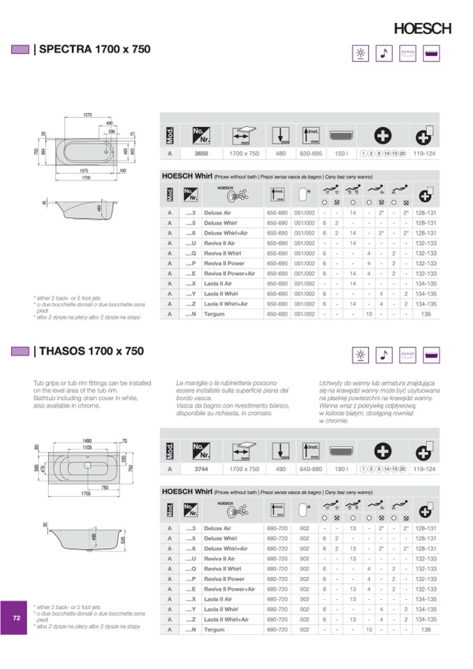 (Prices without bath | Prezzi senza vasca da bagno | Ceny bez ceny wanny)