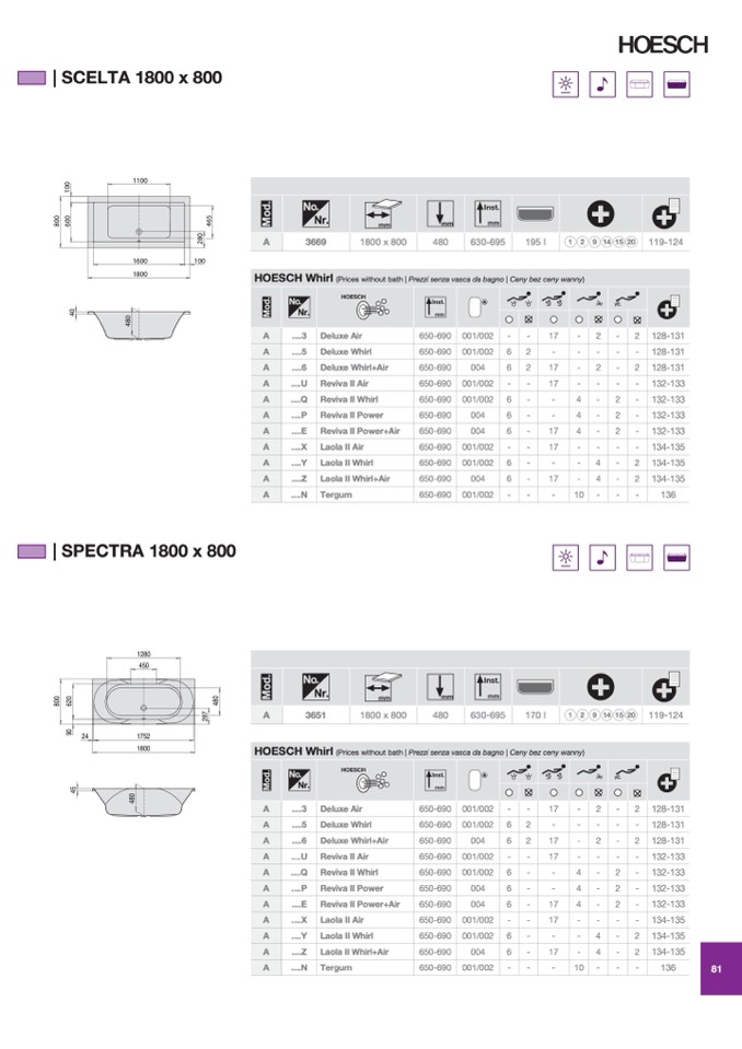 (Prices without bath | Prezzi senza vasca da bagno | Ceny bez ceny wanny)
