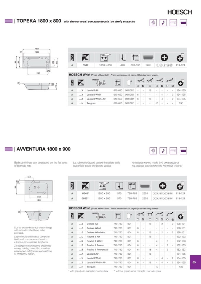 (Prices without bath | Prezzi senza vasca da bagno | Ceny bez ceny wanny)