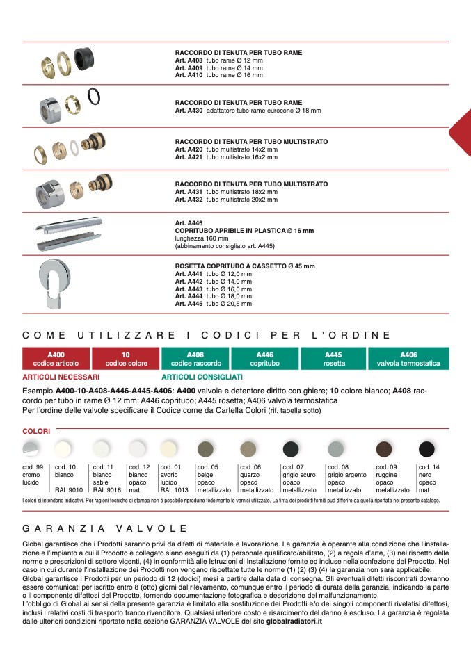 dalle ulteriori condizioni riportate nella sezione GARANZIA VALVOLE del sito globalradiatori.it