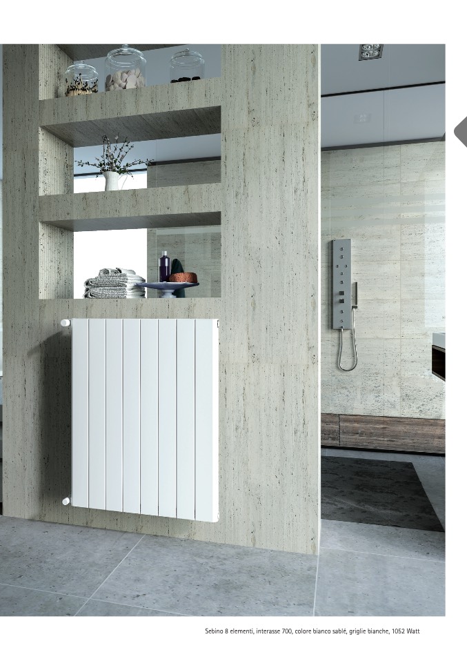 Sebino 8 elementi, interasse 700, colore bianco sablé, griglie bianche, 1052 Watt