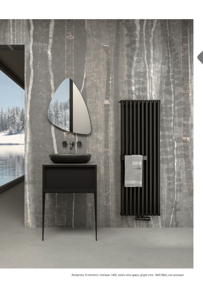 Anteprima 10 elementi, interasse 1400, colore nero opaco, griglie nere, 1600 Watt, con accessori