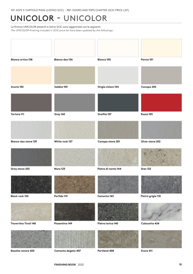 Le finiture UNICOLOR presenti a listino SCIC sono aggiornate con le seguenti:
