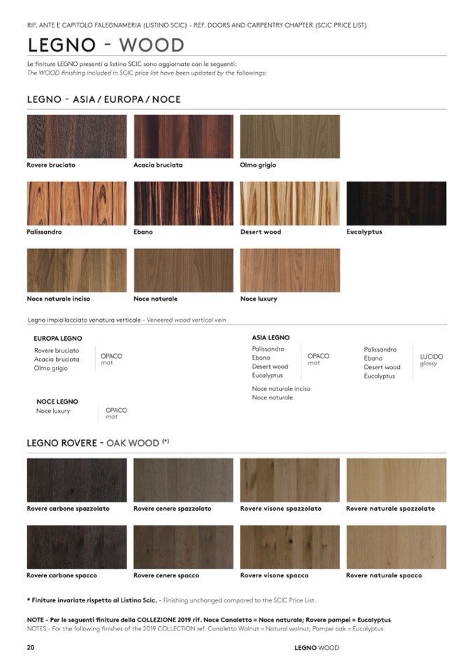 Le finiture LEGNO presenti a listino SCIC sono aggiornate con le seguenti: