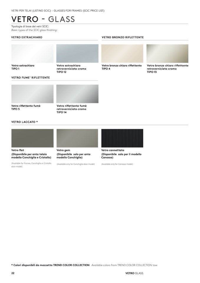 VETRI PER TELAI (LISTINO SCIC) - GLASSES FOR FRAMES (SCIC PRICE LIST)