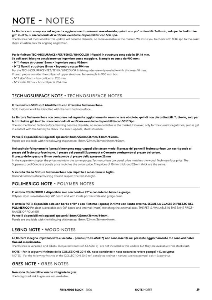 The finishes not mentioned in this update will become obsolete, no more available in the market. We invite you to check with SCIC spa to the exact