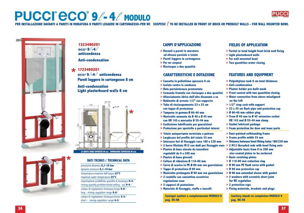 PER INSTALLAZIONE DAVANTI A PARETI IN MURATURA O PARETI LEGGERE IN CARTONGESSO-PER WC