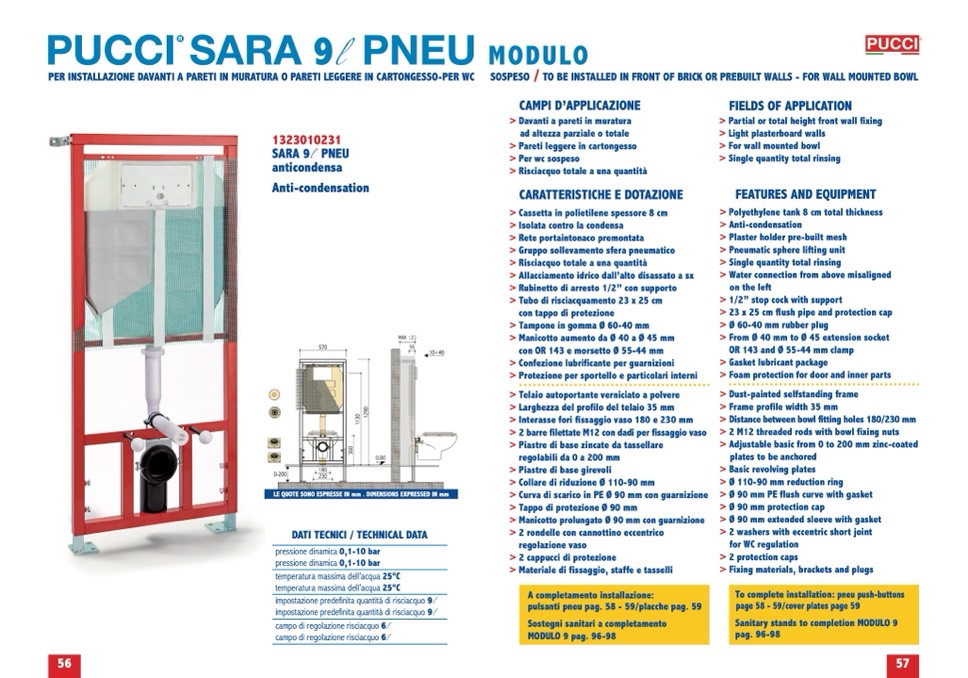 PER INSTALLAZIONE DAVANTI A PARETI IN MURATURA O PARETI LEGGERE IN CARTONGESSO-PER WC SOSPESO