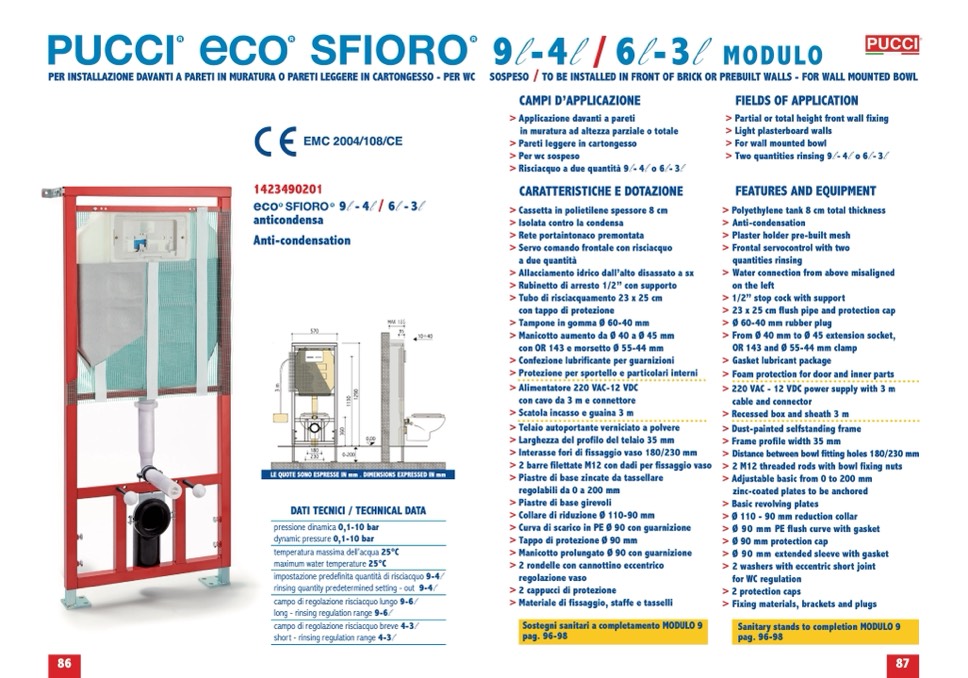 PER INSTALLAZIONE DAVANTI A PARETI IN MURATURA O PARETI LEGGERE IN CARTONGESSO - PER WC SOSPESO
