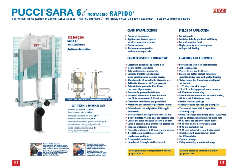 PER PARETI IN MURATURA O DAVANTI ALLE STESSE - PER WC SOSPESO