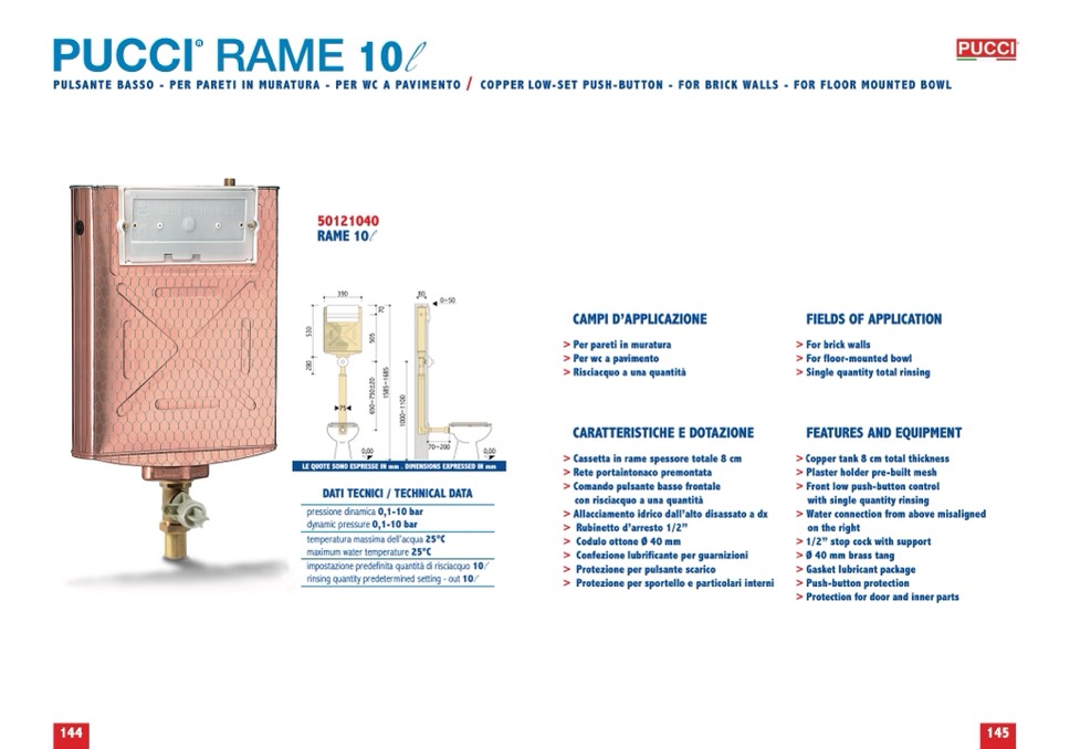 PULSANTE BASSO - PER PARETI IN MURATURA - PER WC A PAVIMENTO