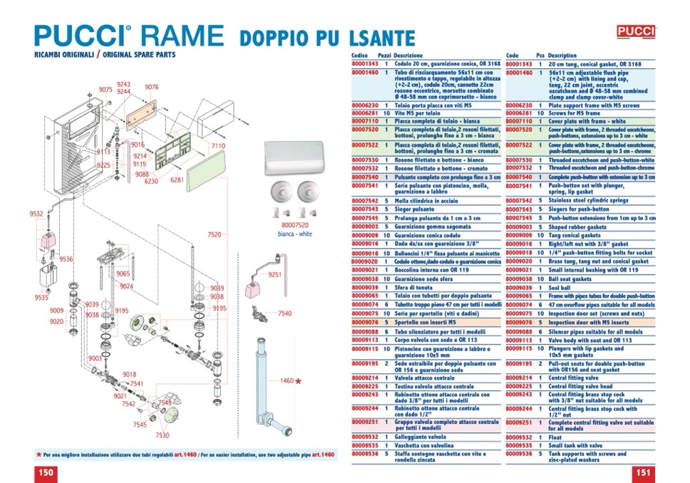 Per una migliore installazione utilizzare due tubi regolabili art.1460 / For an easier installation, use two adjustable pipe art.1460