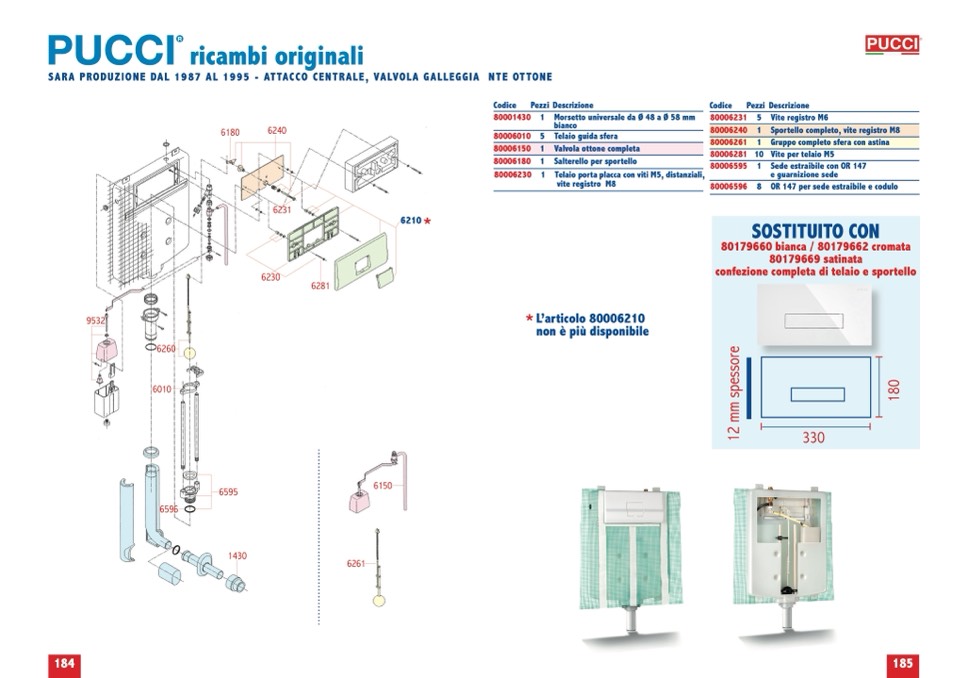 SARA PRODUZIONE DAL 1987 AL 1995 - ATTACCO CENTRALE, VALVOLA GALLEGGIA NTE OTTONE