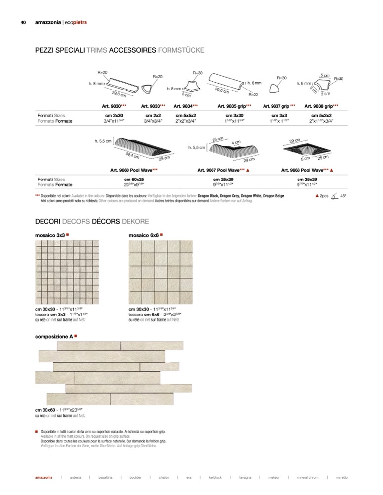 Disponible dans toutes les couleurs pour la surface naturelle. Sur demande la finition grip.