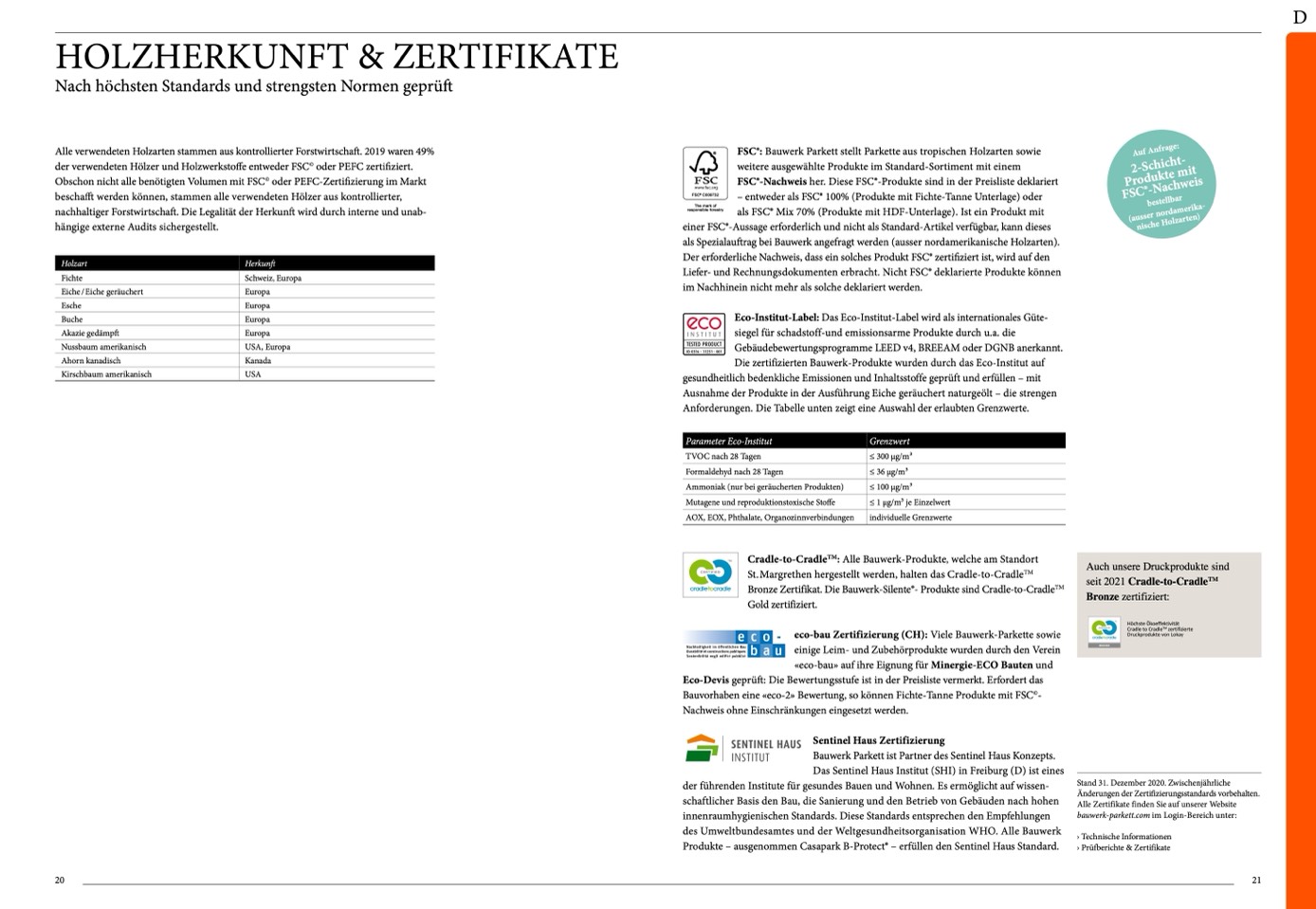 eco-bau Zertifizierung (CH): Viele Bauwerk-Parkette sowie
