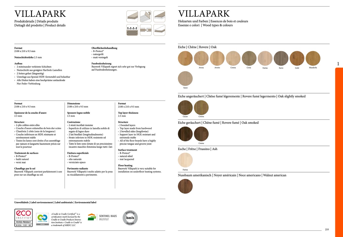 Holzarten und Farben | Essences de bois et couleurs