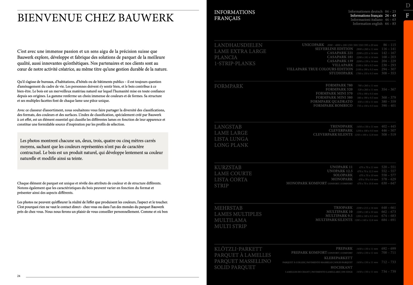 des formats, des couleurs et des surfaces. L’index de classification, spécialement créé par Bauwerk