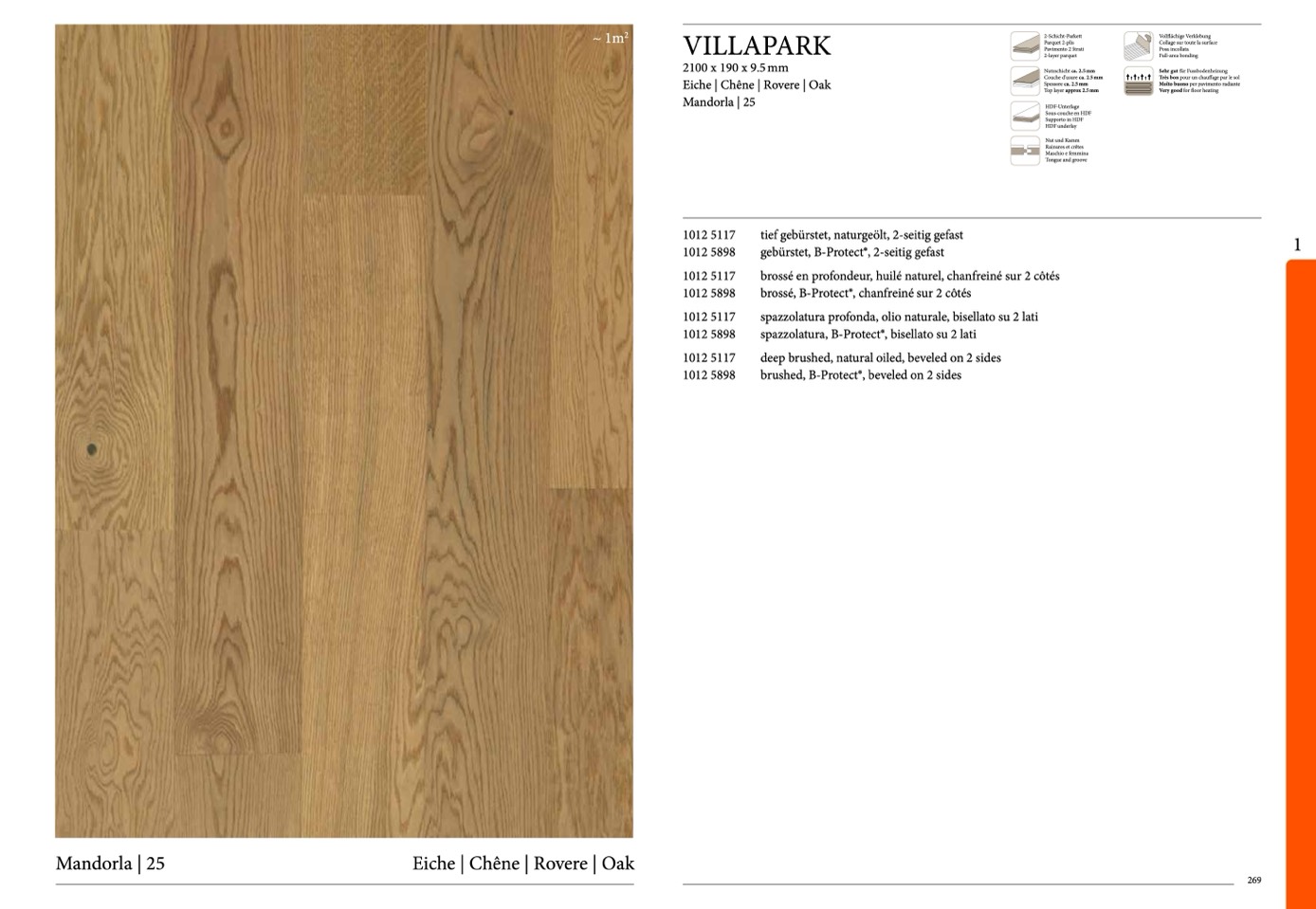 tief gebürstet, naturgeölt, 2-seitig gefast
