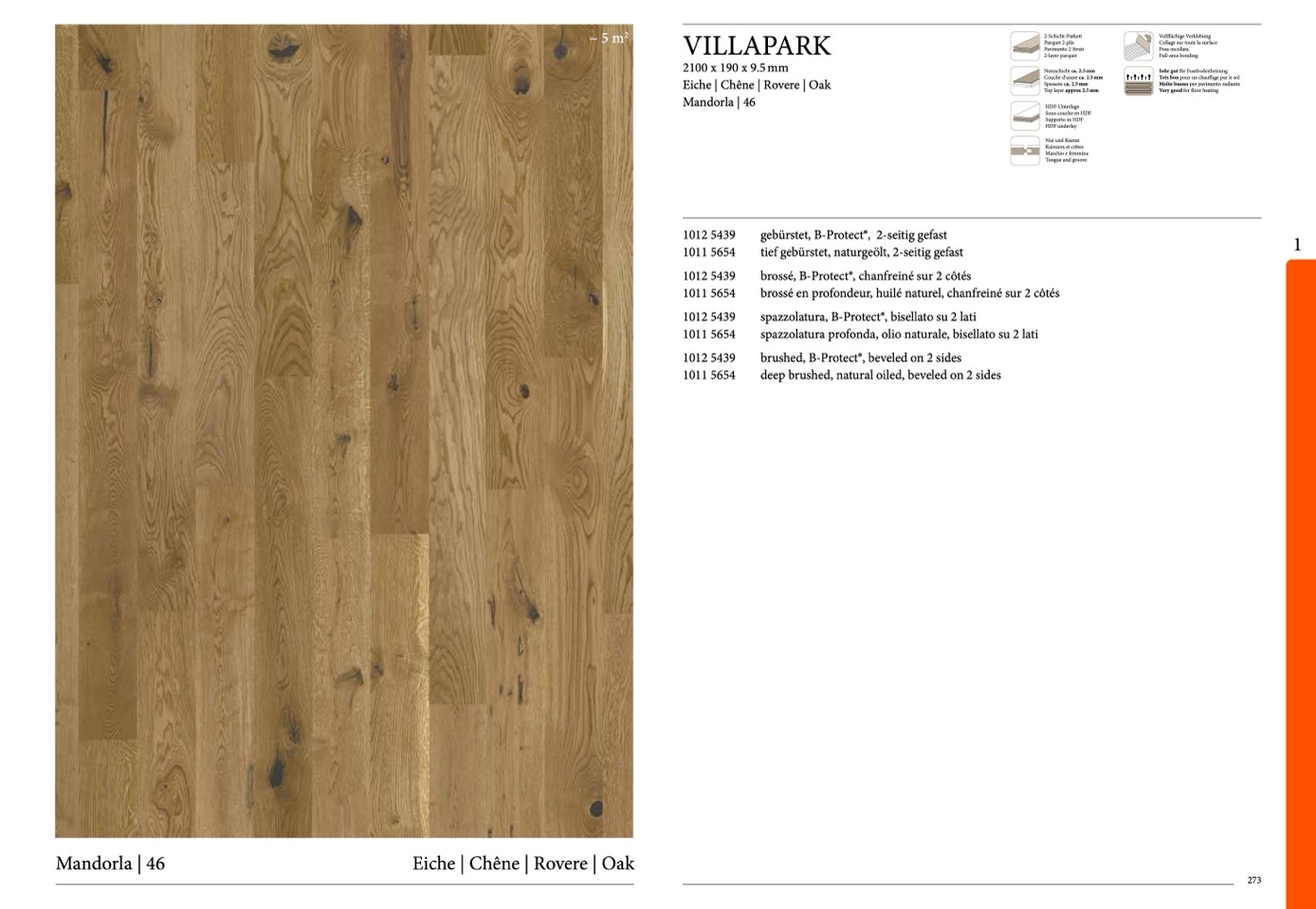 tief gebürstet, naturgeölt, 2-seitig gefast