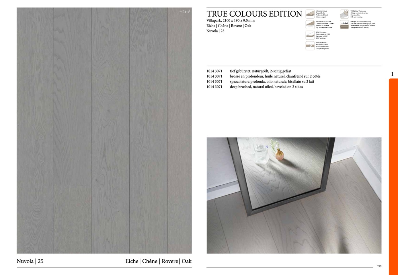 tief gebürstet, naturgeölt, 2-seitig gefast