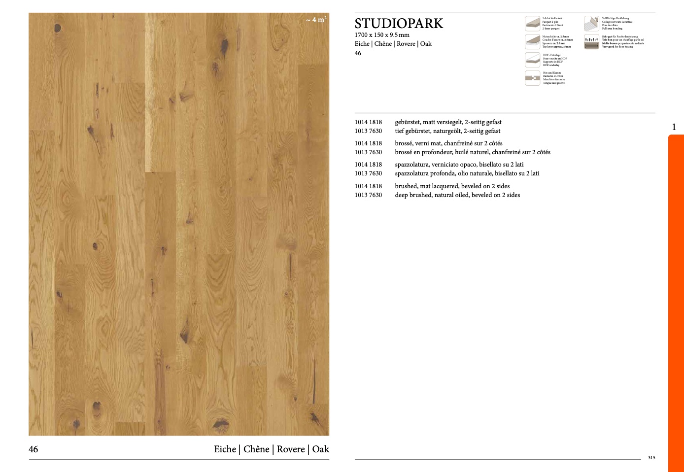 tief gebürstet, naturgeölt, 2-seitig gefast