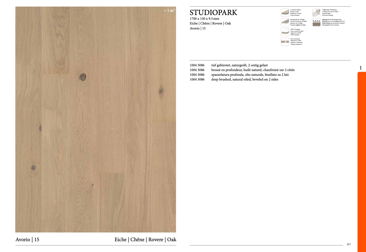 tief gebürstet, naturgeölt, 2-seitig gefast