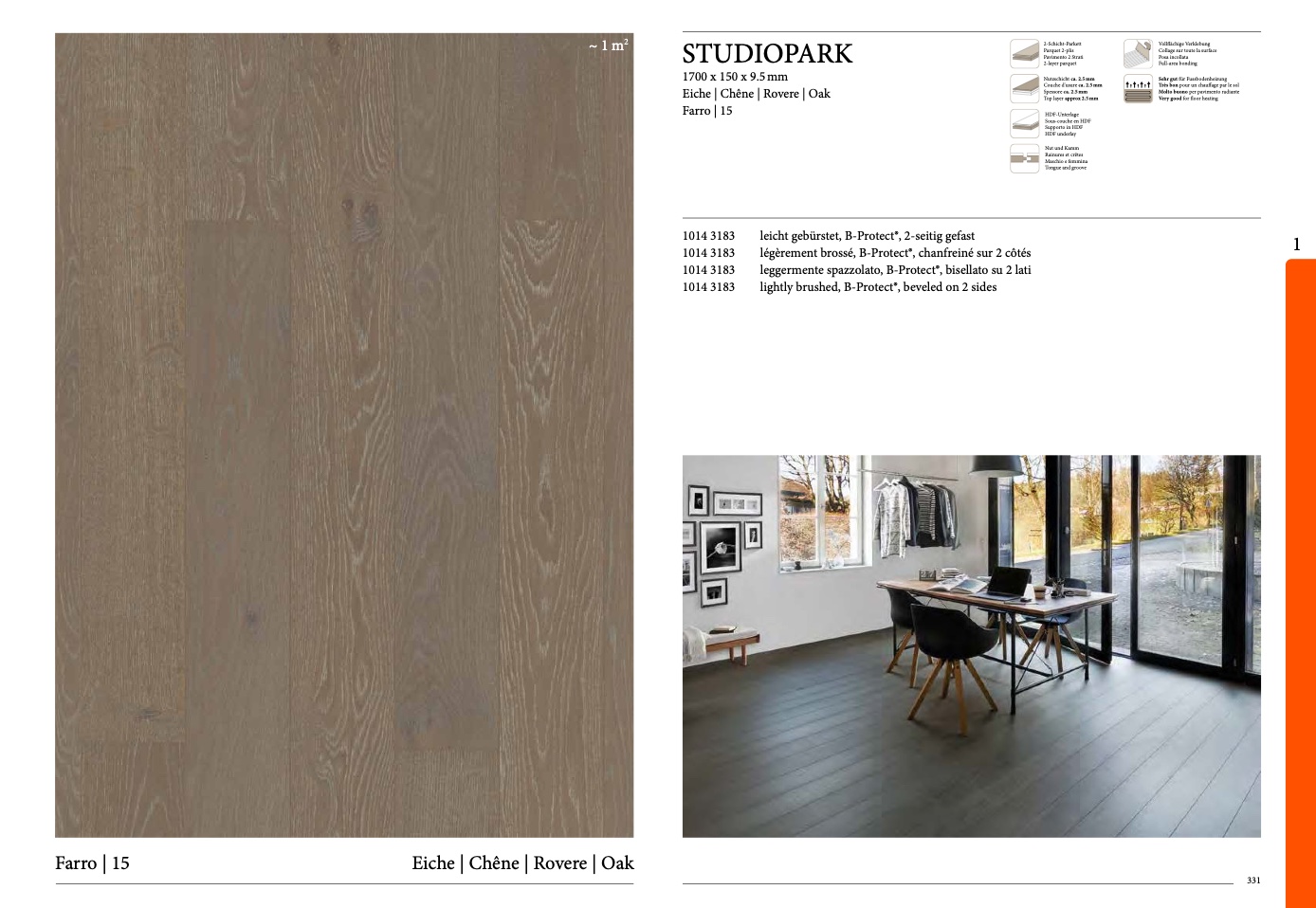 lightly brushed, B-Protect®, beveled on 2 sides